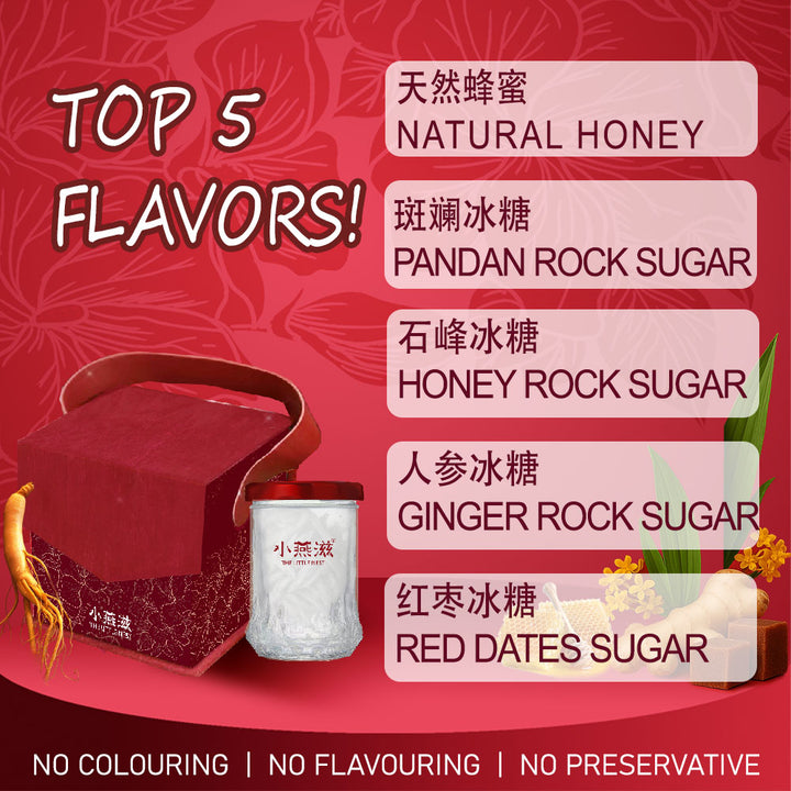 燕窝口味可混搭: 天然蜂蜜,斑斓冰糖,石峰冰糖